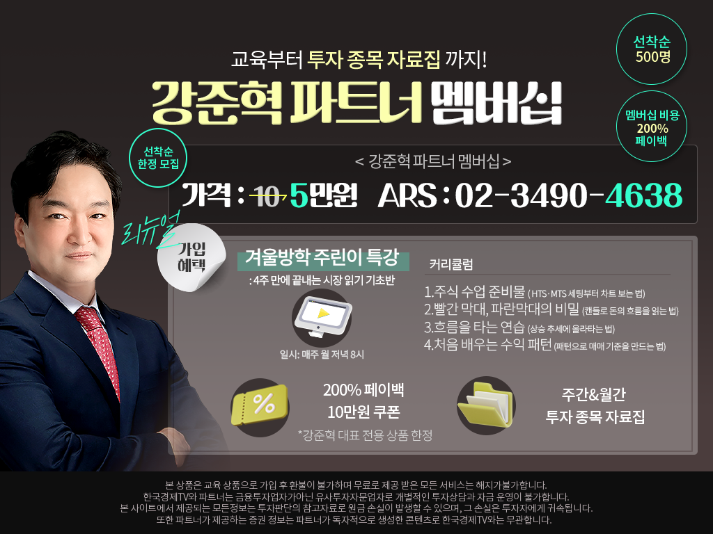 한국경제TV와 파트너는 금융투자업자가 아닌 유사투자자문업자로 개별적인 투자 상담과 자금 운영이 불가합니다.