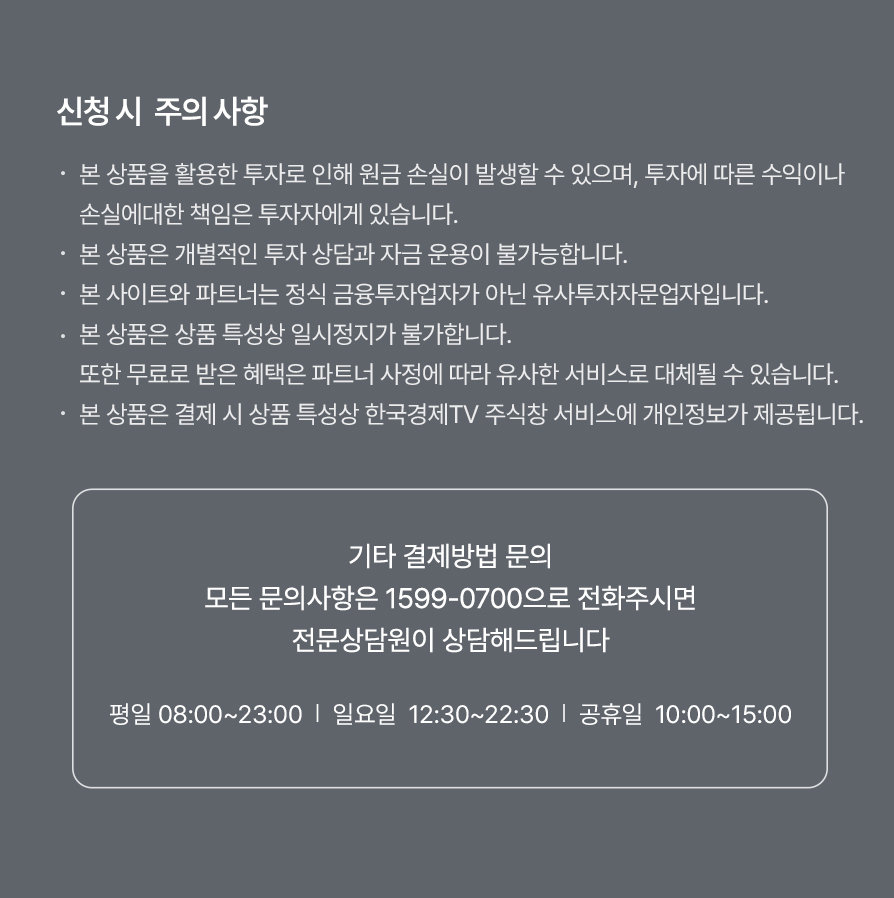 한국경제TV와 파트너는 금융투자업자가 아닌 유사투자자문업자로 개별적인 투자 상담과 자금 운영이 불가합니다.