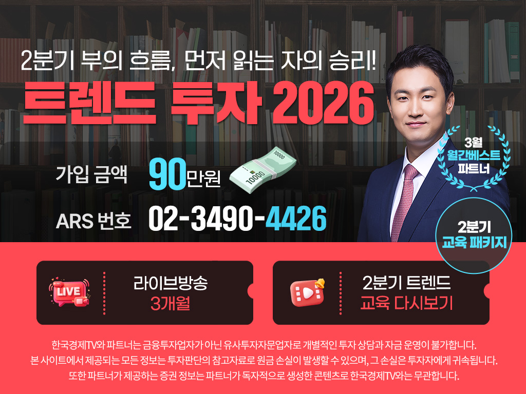 한국경제TV와 파트너는 금융투자업자가 아닌 유사투자자문업자로 개별적인 투자 상담과 자금 운영이 불가합니다.