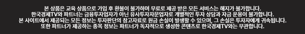 한국경제TV와 파트너는 금융투자업자가 아닌 유사투자자문업자로 개별적인 투자 상담과 자금 운영이 불가합니다.