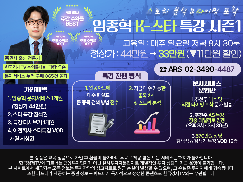 한국경제TV와 파트너는 금융투자업자가 아닌 유사투자자문업자로 개별적인 투자 상담과 자금 운영이 불가합니다.