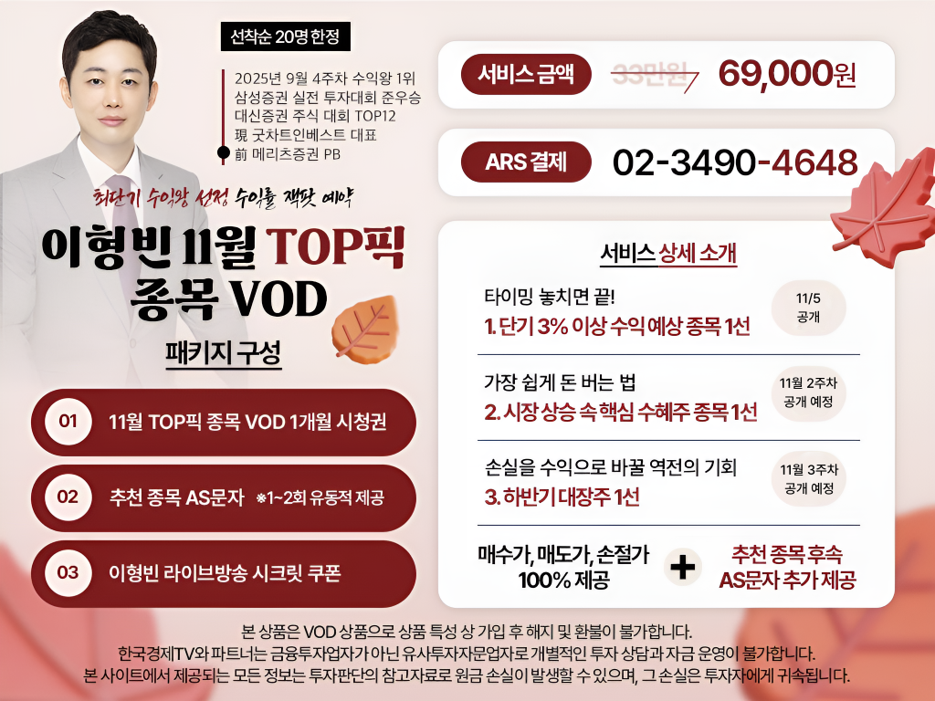한국경제TV와 파트너는 금융투자업자가 아닌 유사투자자문업자로 개별적인 투자 상담과 자금 운영이 불가합니다.