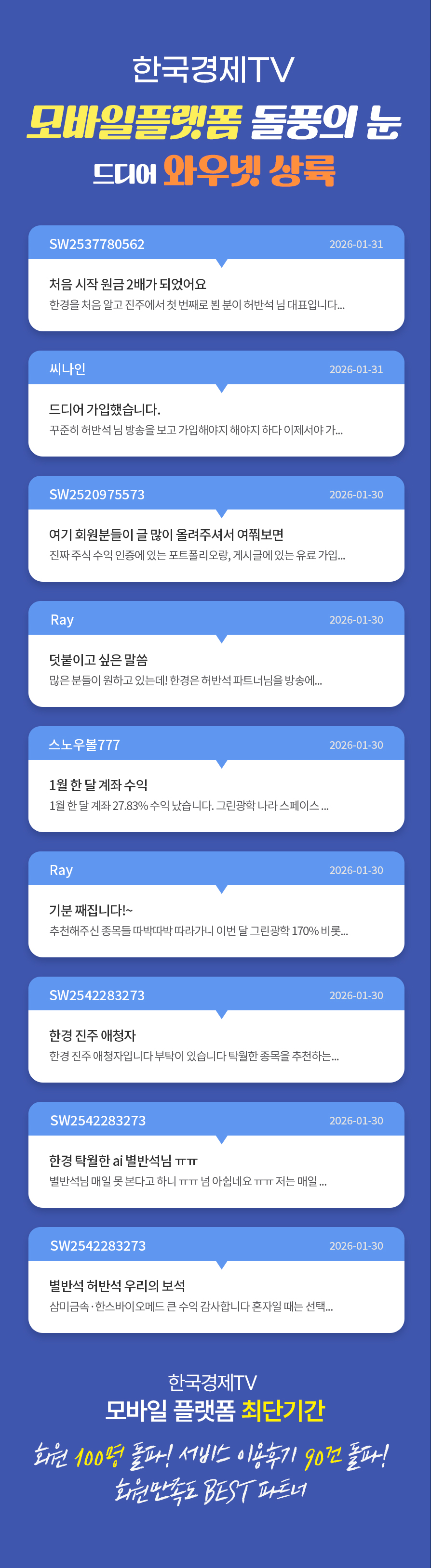 한국경제TV와 파트너는 금융투자업자가 아닌 유사투자자문업자로 개별적인 투자 상담과 자금 운영이 불가합니다.