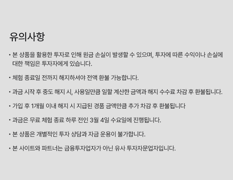 본 사이트에서 제공되는 모든 정보는 투자판단의 참고자료로 원금 손실이 발생할 수 있으며, 그 손실은 투자자에게 귀속됩니다.