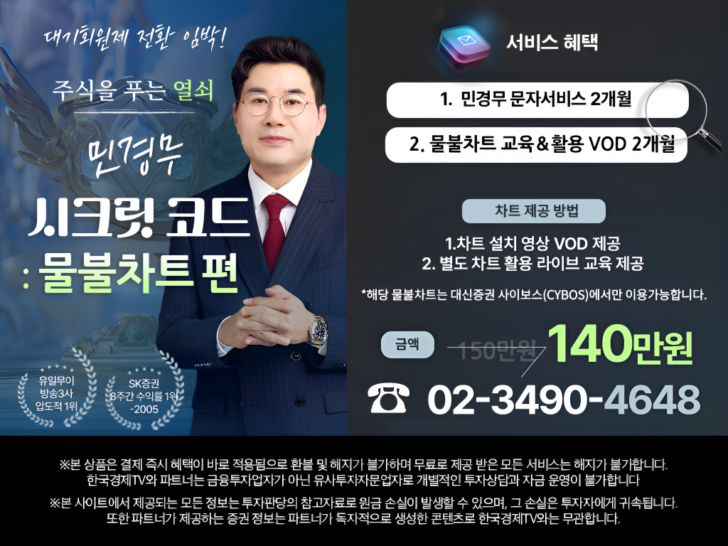 한국경제TV와 파트너는 금융투자업자가 아닌 유사투자자문업자로 개별적인 투자 상담과 자금 운영이 불가합니다.