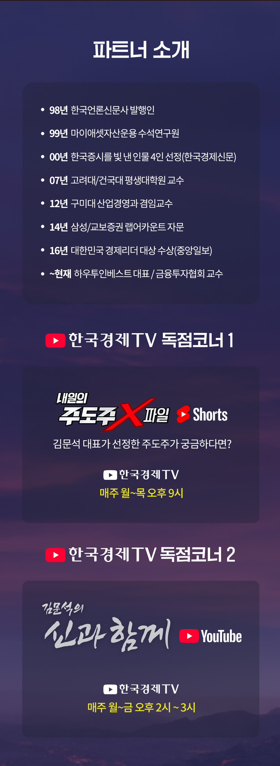 한국경제TV와 파트너는 금융투자업자가 아닌 유사투자자문업자로 개별적인 투자 상담과 자금 운영이 불가합니다.