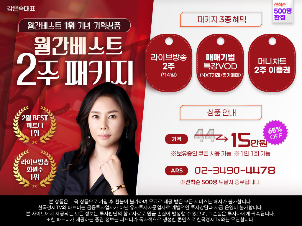 한국경제TV와 파트너는 금융투자업자가 아닌 유사투자자문업자로 개별적인 투자 상담과 자금 운영이 불가합니다.
