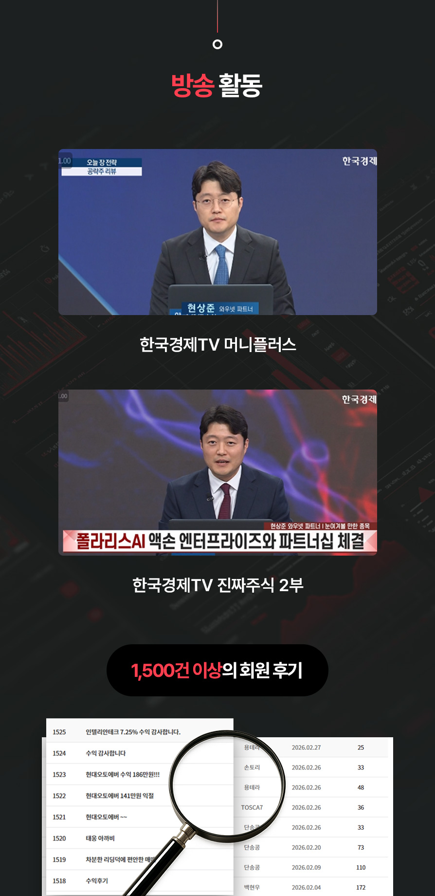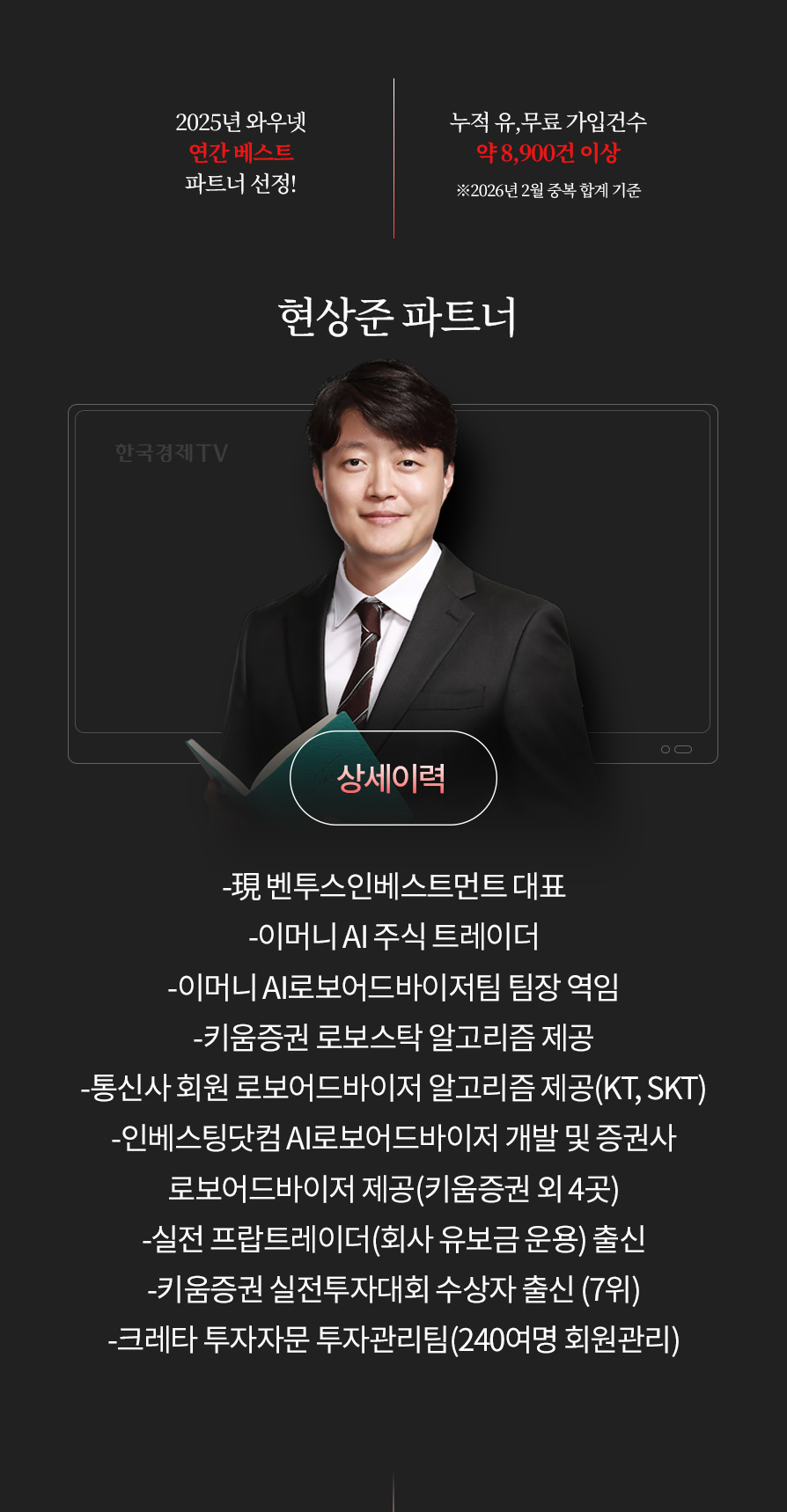 한국경제TV와 파트너는 금융투자업자가 아닌 유사투자자문업자로 개별적인 투자 상담과 자금 운영이 불가합니다.