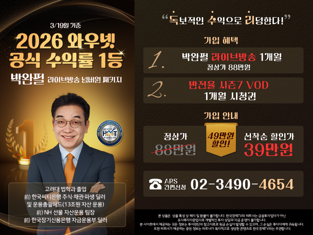 한국경제TV와 파트너는 금융투자업자가 아닌 유사투자자문업자로 개별적인 투자 상담과 자금 운영이 불가합니다.