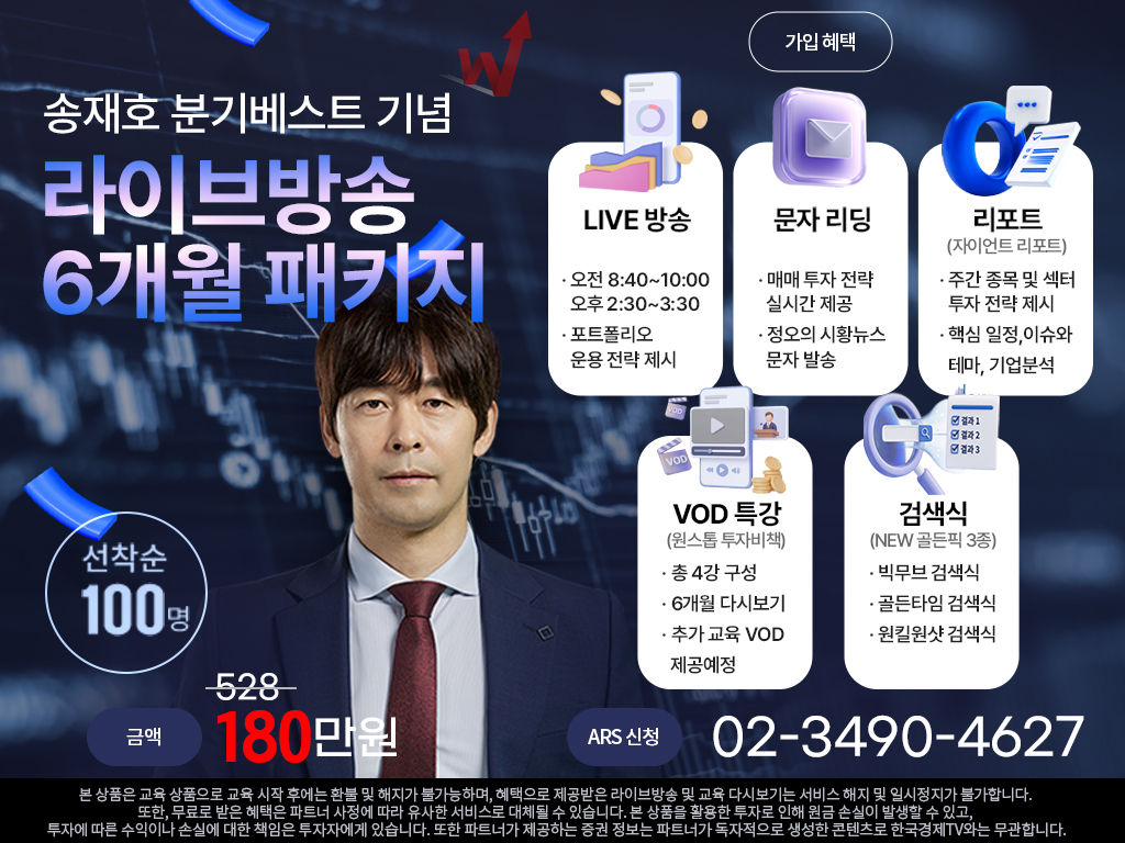 한국경제TV와 파트너는 금융투자업자가 아닌 유사투자자문업자로 개별적인 투자 상담과 자금 운영이 불가합니다.