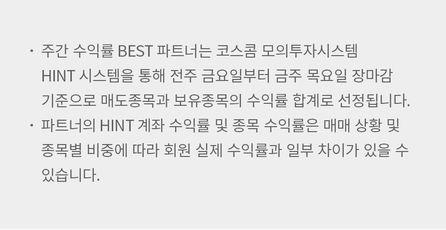 본 사이트에서 제공되는 모든 정보는 투자판단의 참고자료로 원금 손실이 발생할 수 있으며, 그 손실은 투자자에게 귀속됩니다.