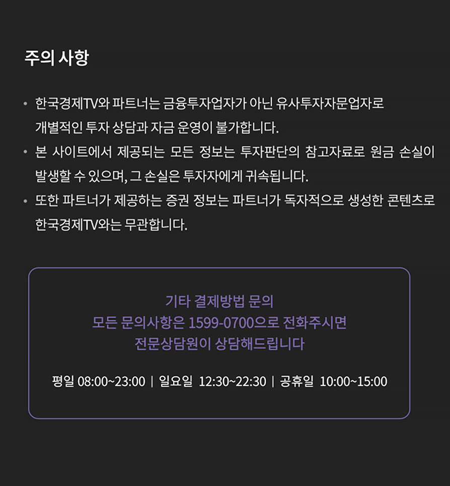 한국경제TV와 파트너는 금융투자업자가 아닌 유사투자자문업자로 개별적인 투자 상담과 자금 운영이 불가합니다.