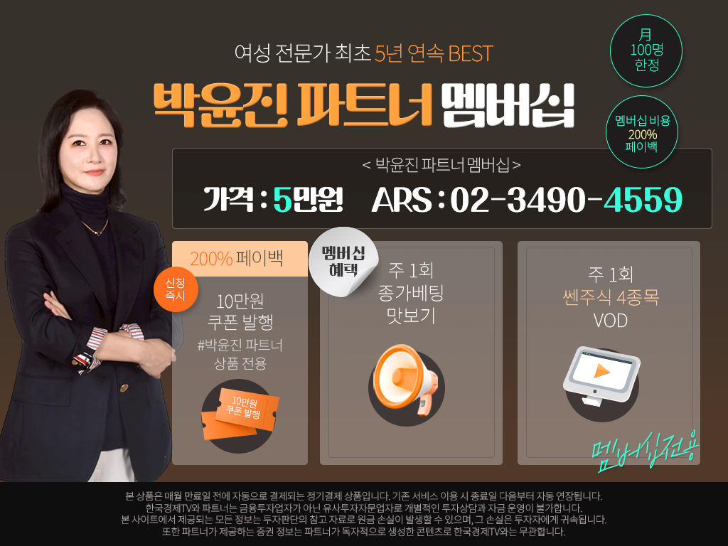 한국경제TV와 파트너는 금융투자업자가 아닌 유사투자자문업자로 개별적인 투자 상담과 자금 운영이 불가합니다.