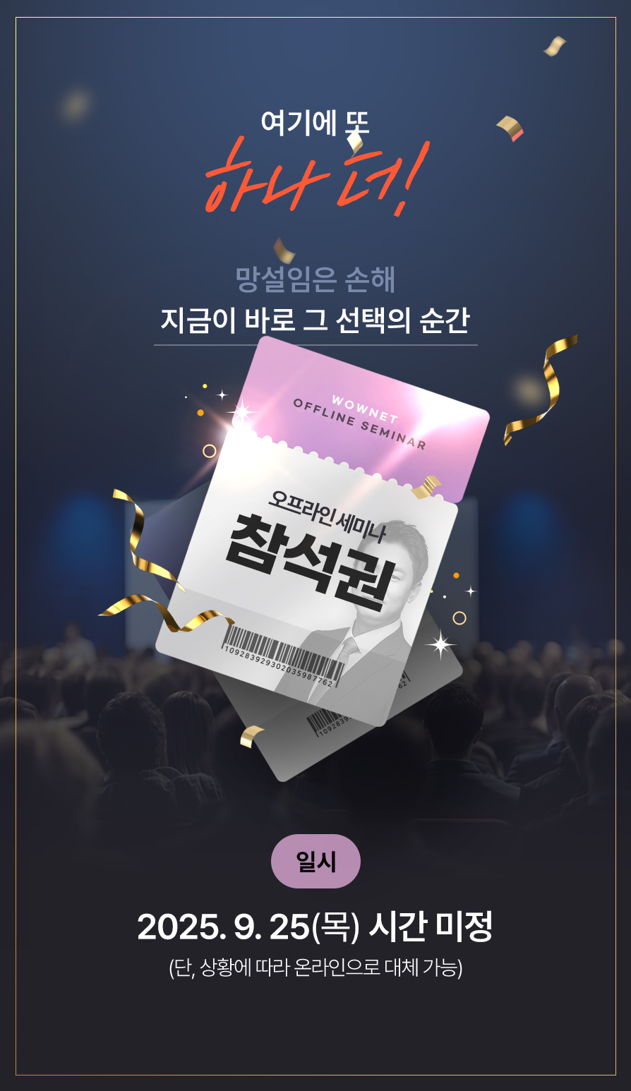 - 2025.09.16이전글1회차 200명 조기마감! 특별 앵콜판매 선착순 50명