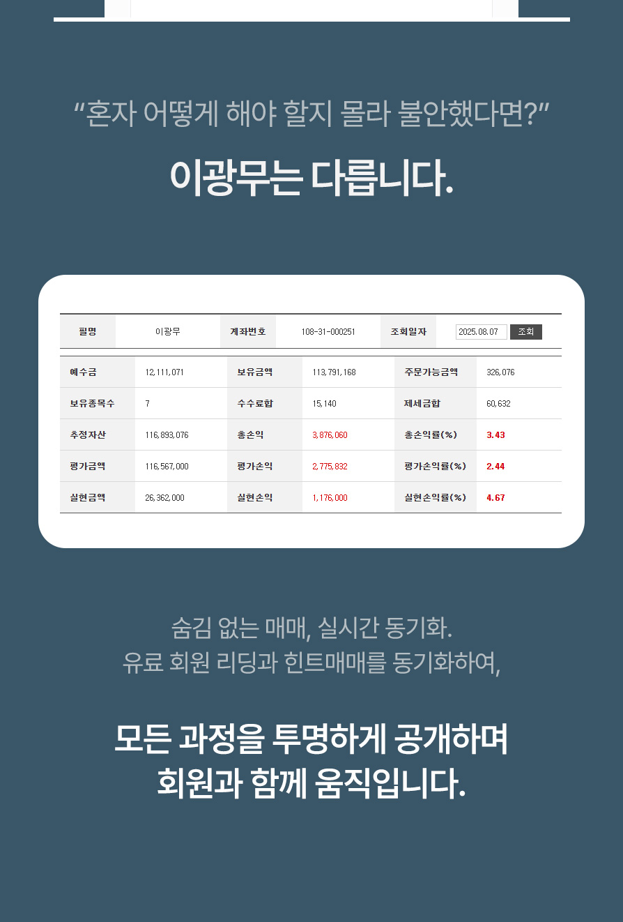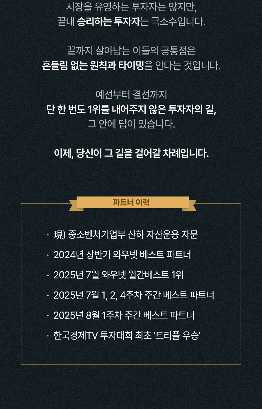 본 사이트에서 제공되는 모든 정보는 투자판단의 참고자료로 원금 손실이 발생할 수 있으며, 그 손실은 투자자에게 귀속됩니다.