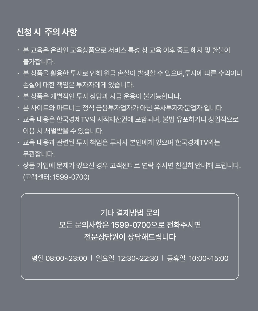 한국경제TV와 파트너는 금융투자업자가 아닌 유사투자자문업자로 개별적인 투자 상담과 자금 운영이 불가합니다.