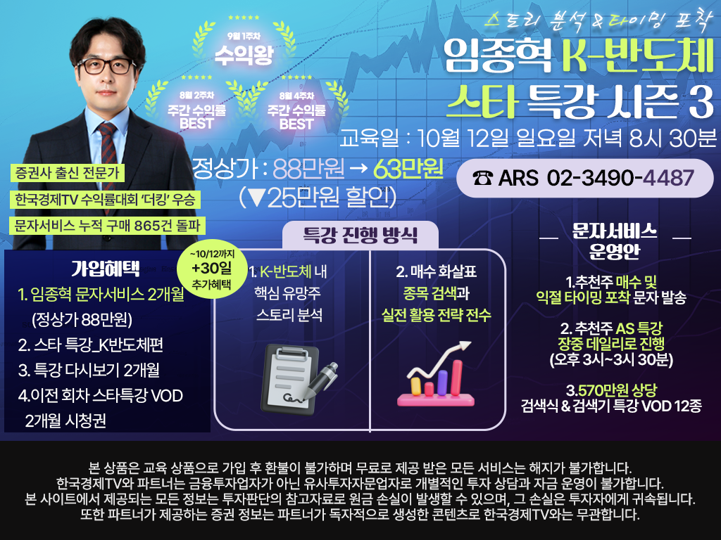 한국경제TV와 파트너는 금융투자업자가 아닌 유사투자자문업자로 개별적인 투자 상담과 자금 운영이 불가합니다.
