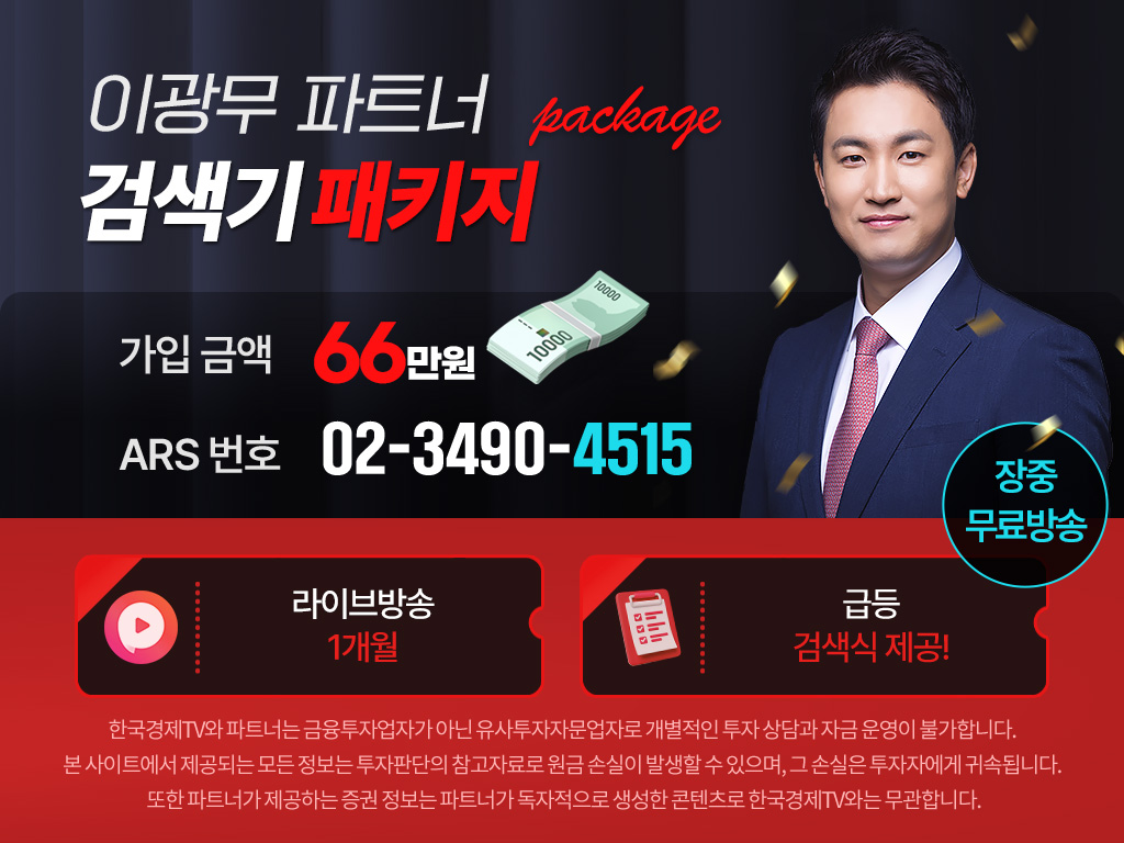 한국경제TV와 파트너는 금융투자업자가 아닌 유사투자자문업자로 개별적인 투자 상담과 자금 운영이 불가합니다.