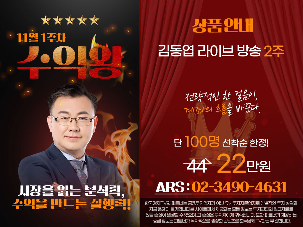 한국경제TV와 파트너는 금융투자업자가 아닌 유사투자자문업자로 개별적인 투자 상담과 자금 운영이 불가합니다.