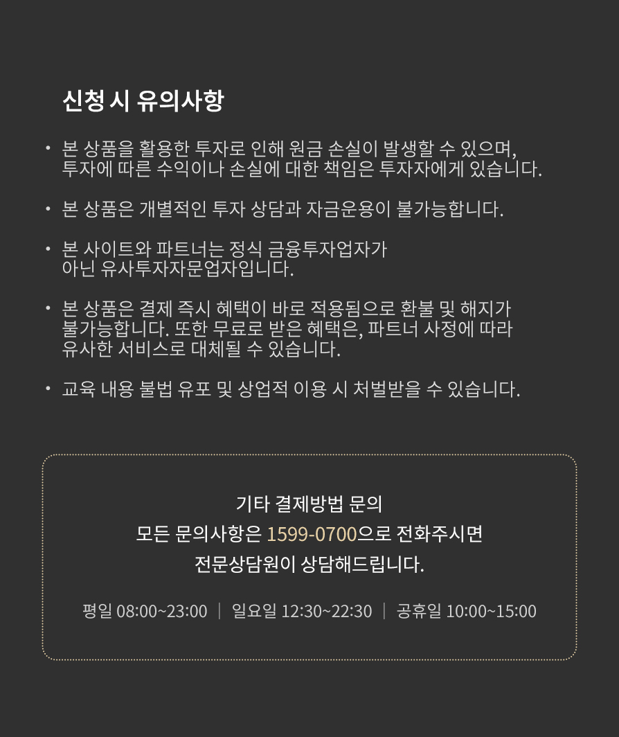 본 사이트에서 제공되는 모든 정보는 투자판단의 참고자료로 원금 손실이 발생할 수 있으며, 그 손실은 투자자에게 귀속됩니다.