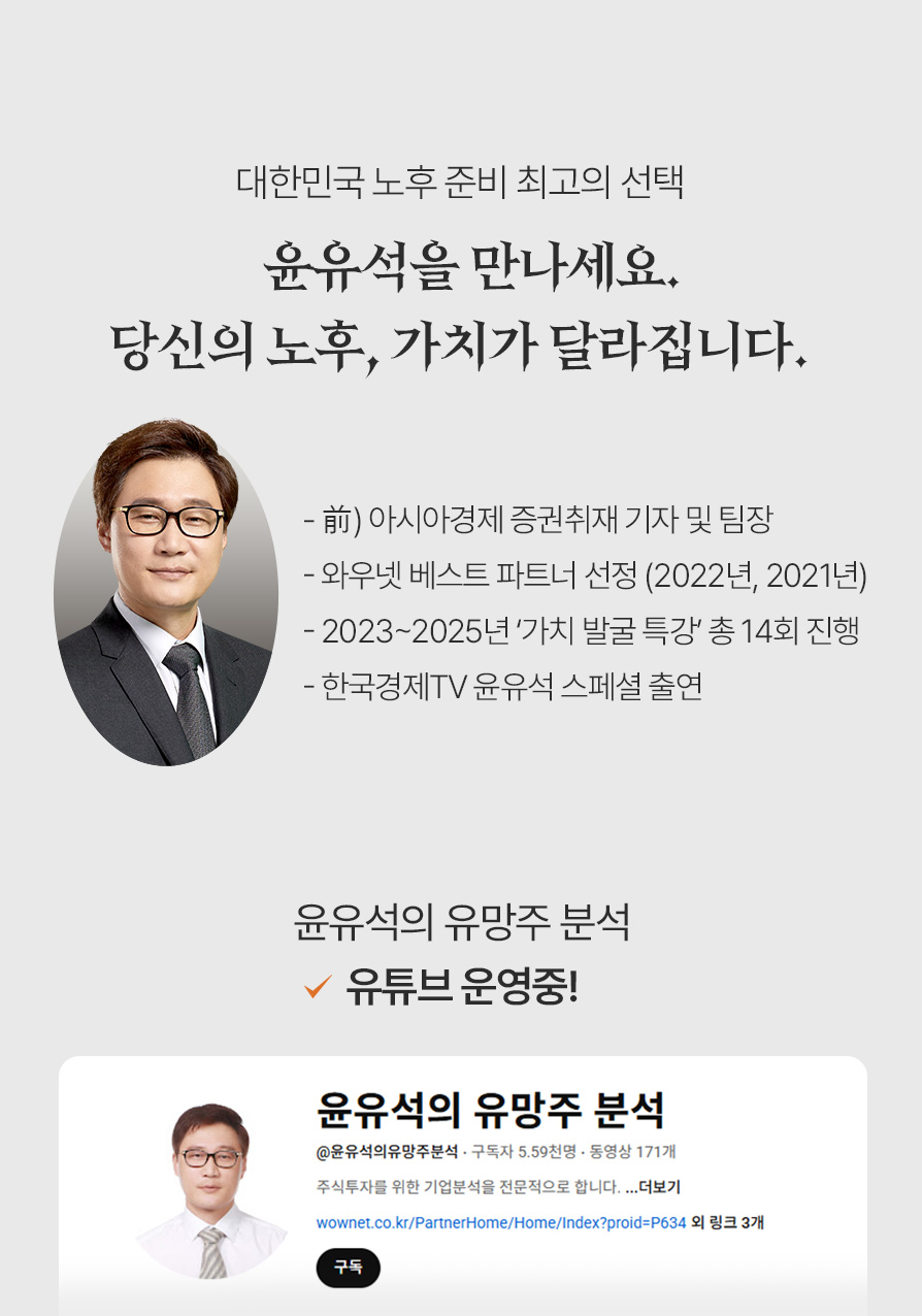 한국경제TV와 파트너는 금융투자업자가 아닌 유사투자자문업자로 개별적인 투자 상담과 자금 운영이 불가합니다.