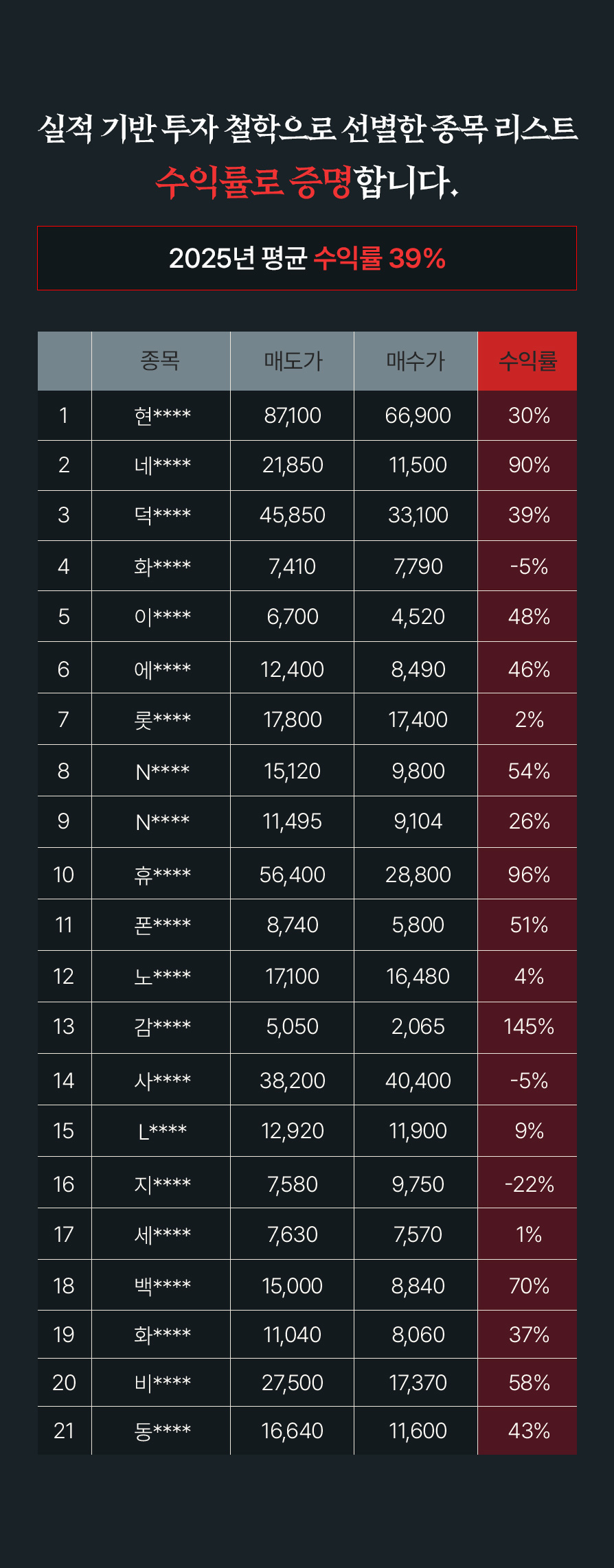 - 2025.11.30이전글최상위 1% 종목 10선 Best of Best