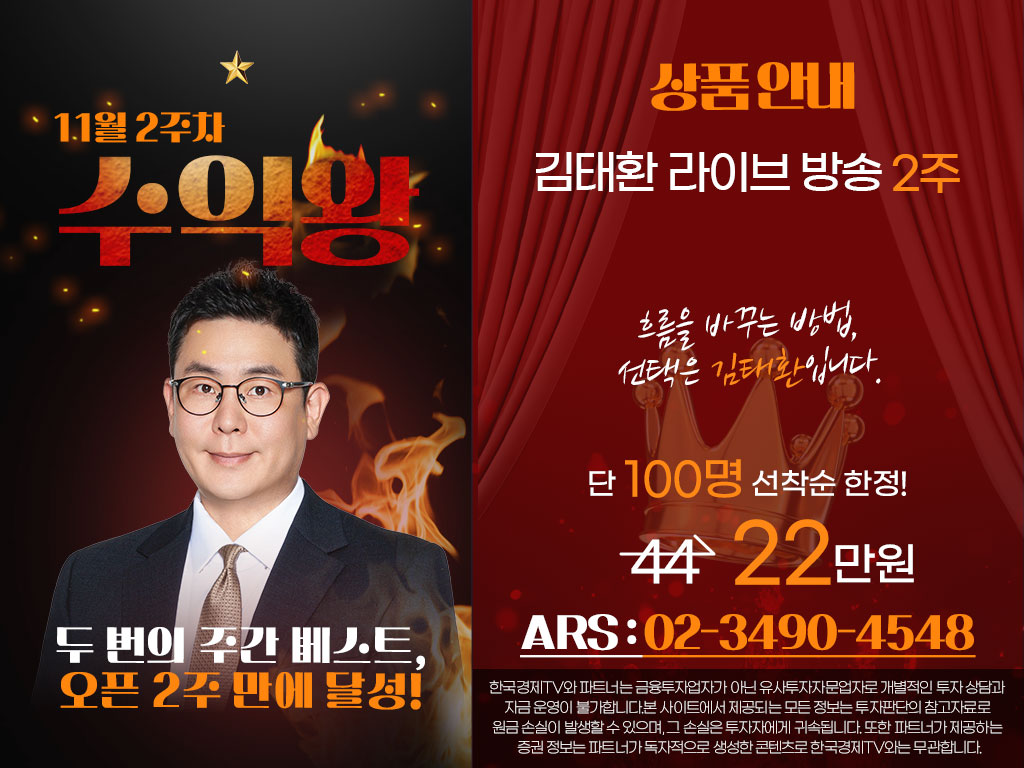 한국경제TV와 파트너는 금융투자업자가 아닌 유사투자자문업자로 개별적인 투자 상담과 자금 운영이 불가합니다.