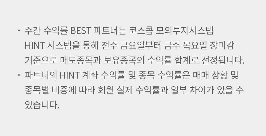 또한 파트너가 제공하는 증권 정보는 파트너가 독자적으로 생성한 콘텐츠로 한국경제TV와는 무관합니다.