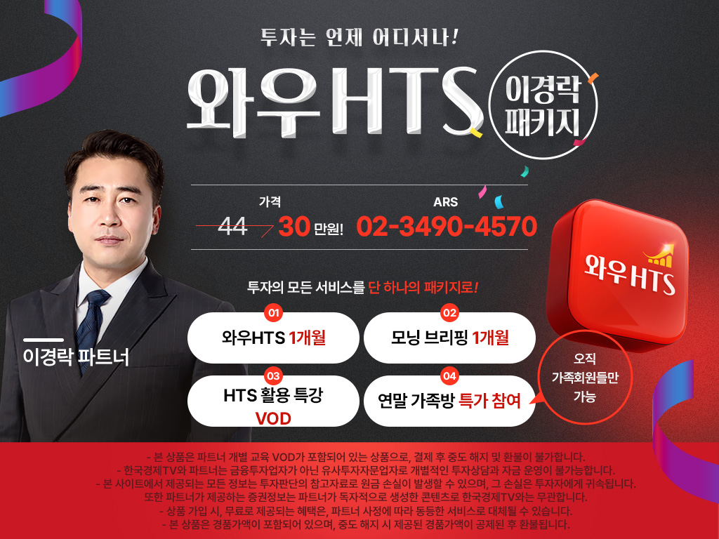 한국경제TV와 파트너는 금융투자업자가 아닌 유사투자자문업자로 개별적인 투자 상담과 자금 운영이 불가합니다.