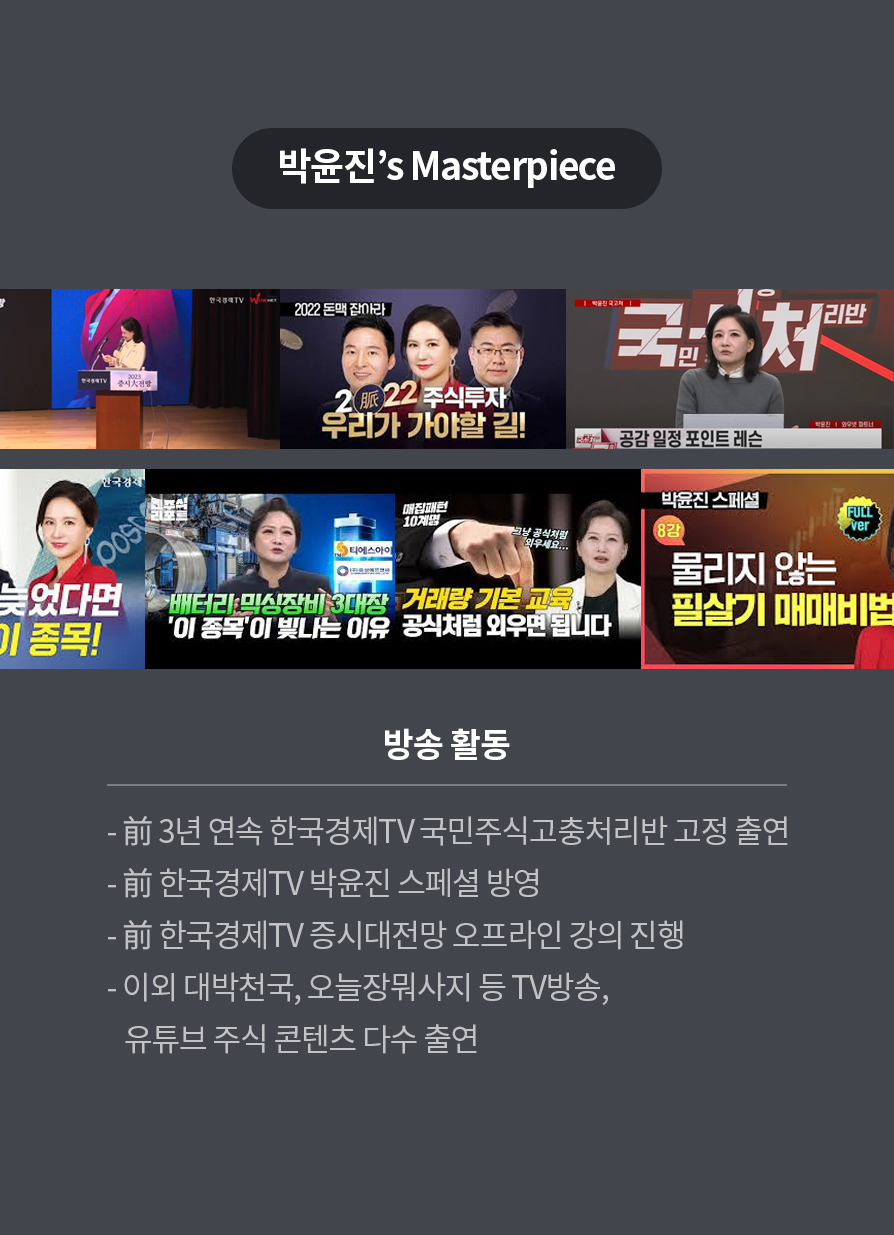 안녕하세요. 5년 연속 한국경제TV 베스트파트너 박윤진입니다.